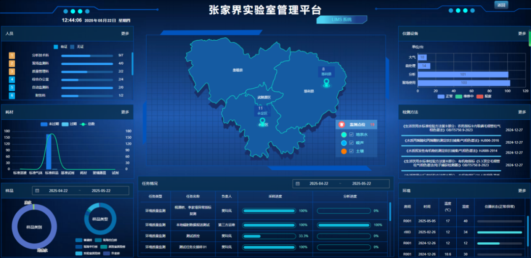 数智化生态环境监测实验室管理平台,以实验室检测的人、机、料、法、环、测为核心管理流程,以平台化的基础数据、智能化的楼宇控制、可视化的流程管理、精细化的权限控制、图表化的数据分析、所见即所得的电子记录、报告自动生成、全方位业务管理为实验室检测全流程信息化管理提供有力支撑,推进实验室检测日常工作向无纸化转型。通过大数据、数字孪生等技术对实验室空调、新风、照明、通风、供气、安防及环保设备系统的实时监控、智能分析和预警,提高实验室管理效率和安全性,达到降低实验室能耗和运营成本的效能。数智化生态环境监测实验室管理平台的建成,能实现检测业务流程标准化、管理智能化、保障安全化、质量可追溯化,显著提高实验室的工作效率和生产力,降低实验室运行成本,提高质量控制水平。