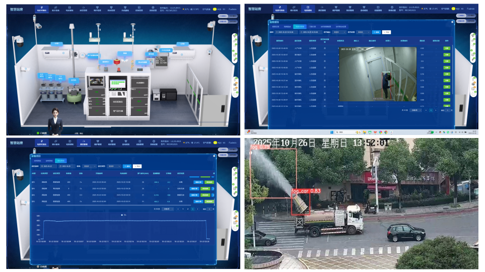 AI诊断,先知先觉:运用人工智能,智能识别仪器状态、自动判断故障、自动完成质控与运维巡检,实现对设备健康状态的“全天候体检”,集成雾炮车作业、秸秆焚烧、烟花爆竹、水雾喷淋、鼓风机干扰、人员逗留、无人机外来入侵、非运维人员入侵等AI算法,精准识别,短视频报警。